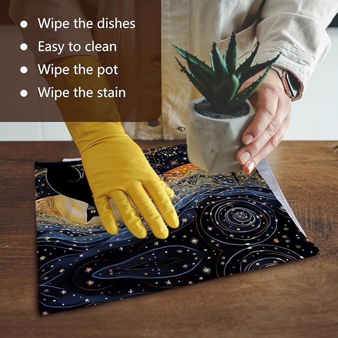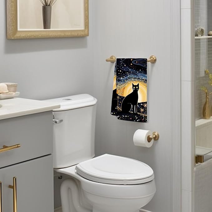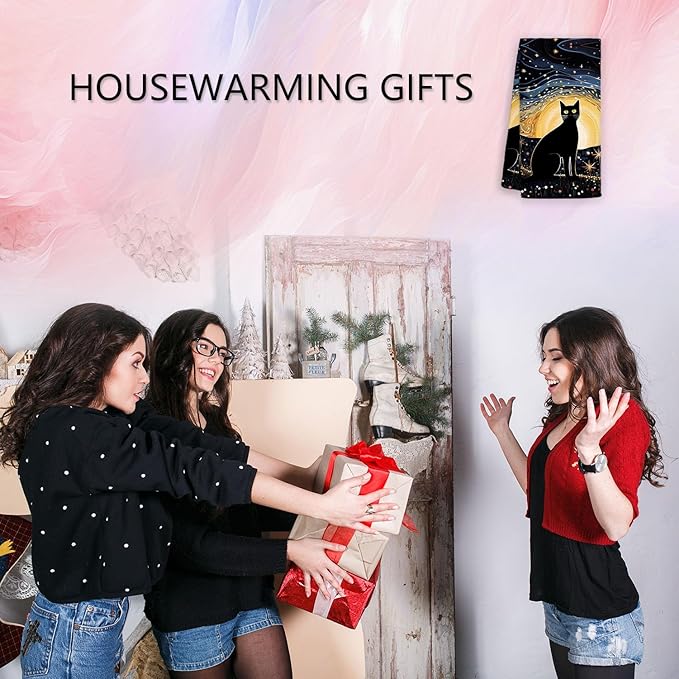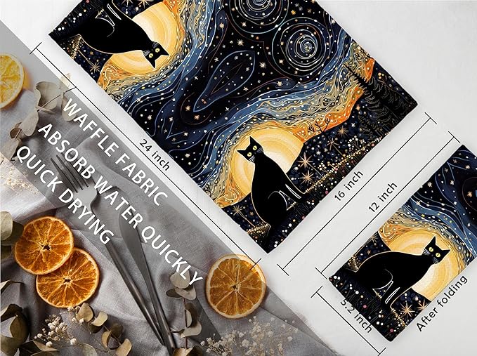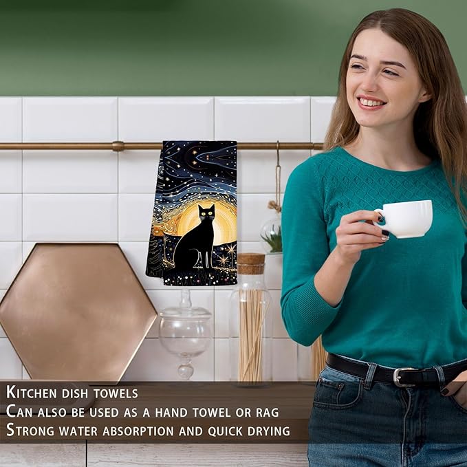 Black Cat Kitchen Towels - Black Cat Decor,Cat Kitchen Decor,Black Cat Gifts for Women,Cat Dish Towels,Cat Hand Dish Tea Towels 16×24 Inch,Cat Gifts for Cat Lovers,Cat Towels for Women, Small