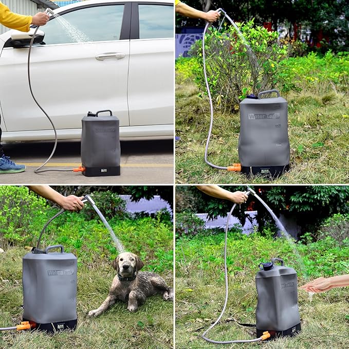 B. TAWD 4.5 Gallon Silicone Water Tank, Portable Camping Shower, USB Battery Charging, Solar Heating, with Shower Head, Electric Portable Outdoor Shower, Built-in Thermometer, Beach, Camping, Hiking