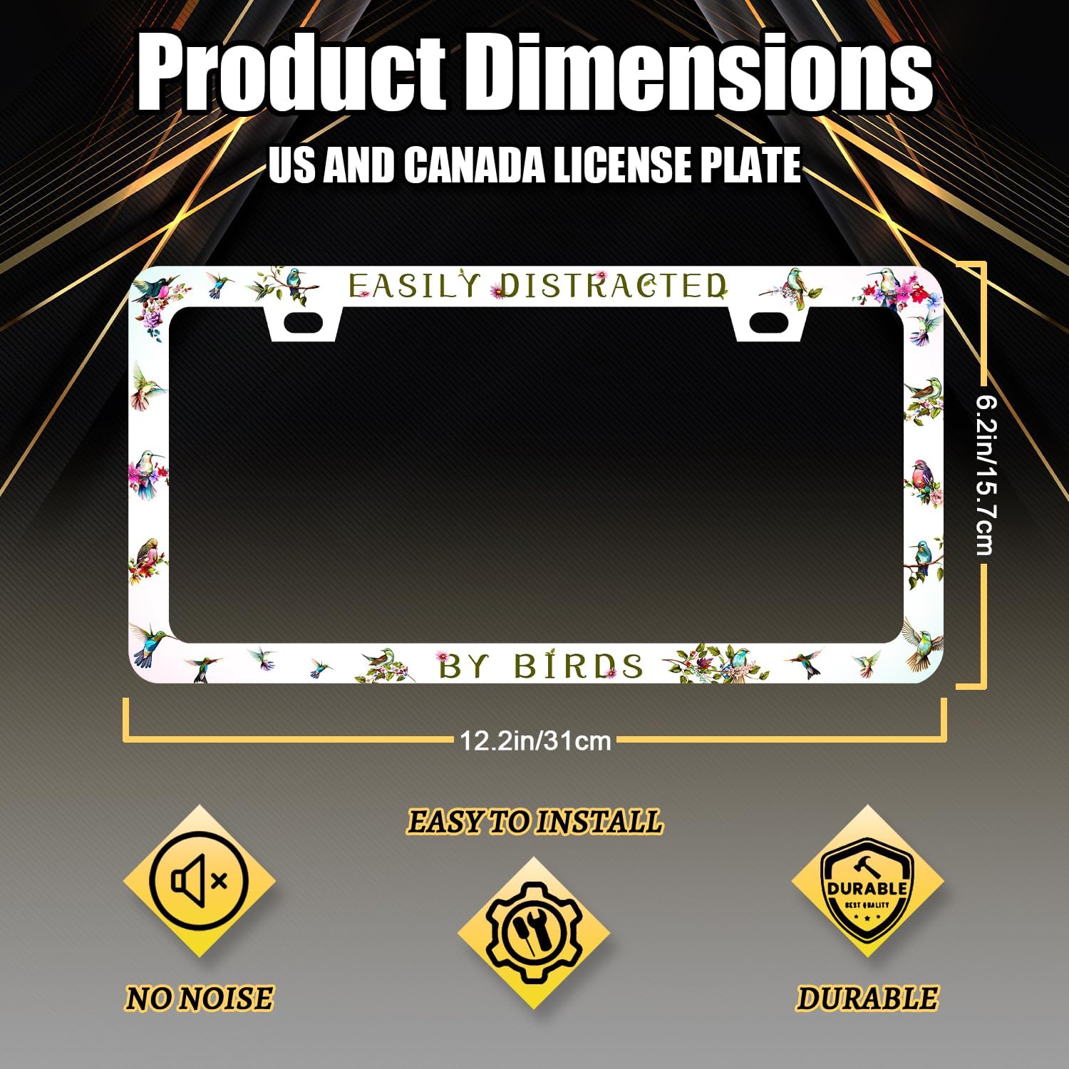 Easily Distracted by Birds License Plate Frame Funny Birds License Plate Holder Colorful License Plate for Car Decoration Stainless Steel Animal Auto Parts with Screws Men Women 12.3" x 6.3"