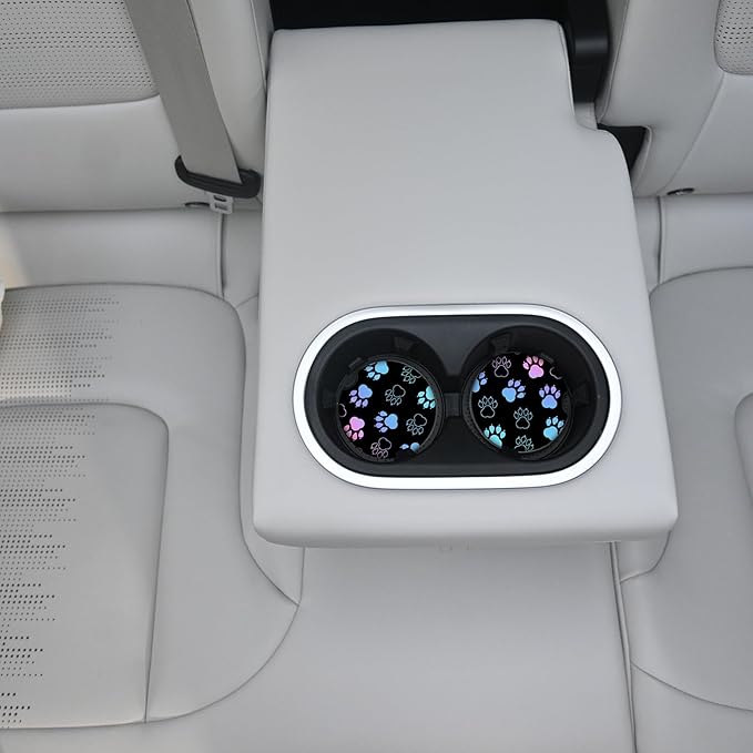 Absorbent Car Coasters for Cup Holders, 2 Pack Universal Neoprene Car Coasters with Finger Slot, Auto Accessories for Women & Men,2.56"(Gradient Black Dog paw Print)