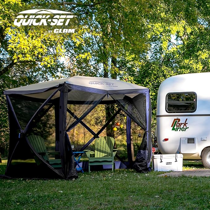 CLAM Pop Up Screen Tent, Outdoor Camping Gazebo Canopy, Venture, 9' x 9', Blue