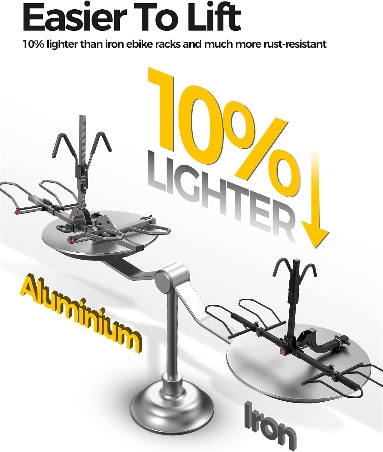 - 【Heavy-Duty and Secure Design】Soft padded hooks keep your bikes stable without swaying or scratching the frame. The anti-wobble hitch system and locking frame clamps ensure secure transport.