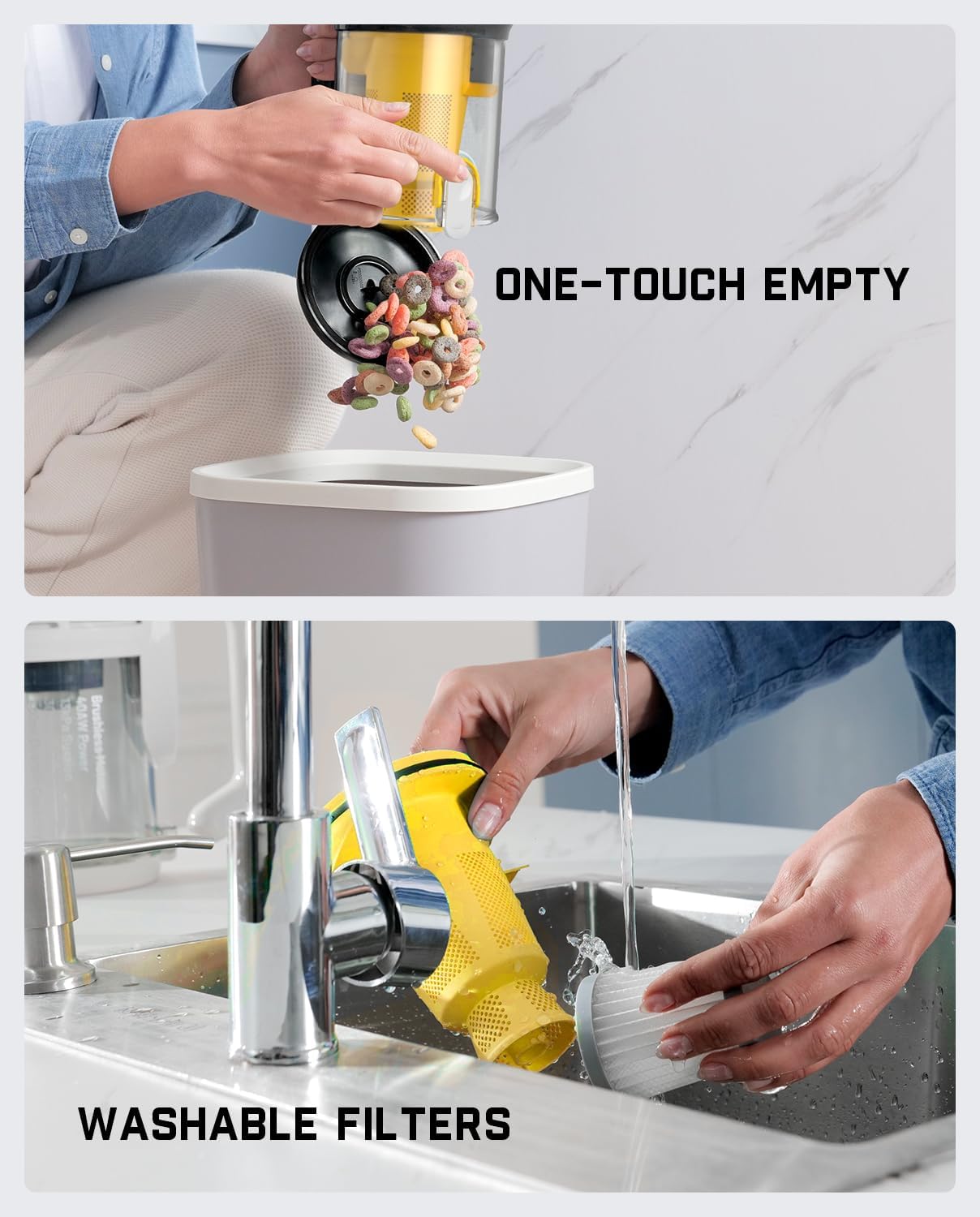- Lightweight & Portable: The handheld vacuum is only 2.24lbs, which is lightweight, compact and very portable. The slick design of the vacuum cleaner makes it easy to grip and comfortable to hold, and you will not get tired or sore after long time use