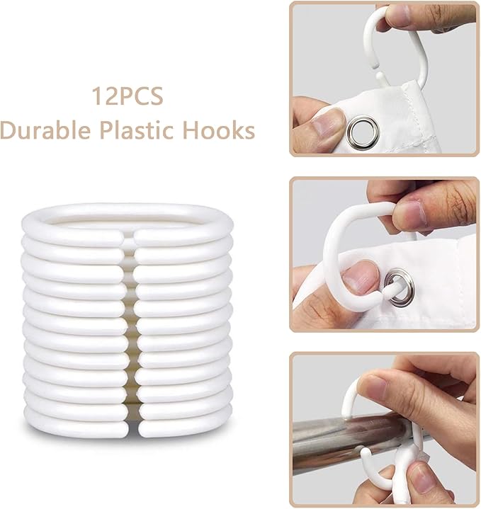 - ★MATERIAL: 100% polyester fabric, water proof. Not see-through, protect your privacy always. Includes 12 plastic curtain hooks.