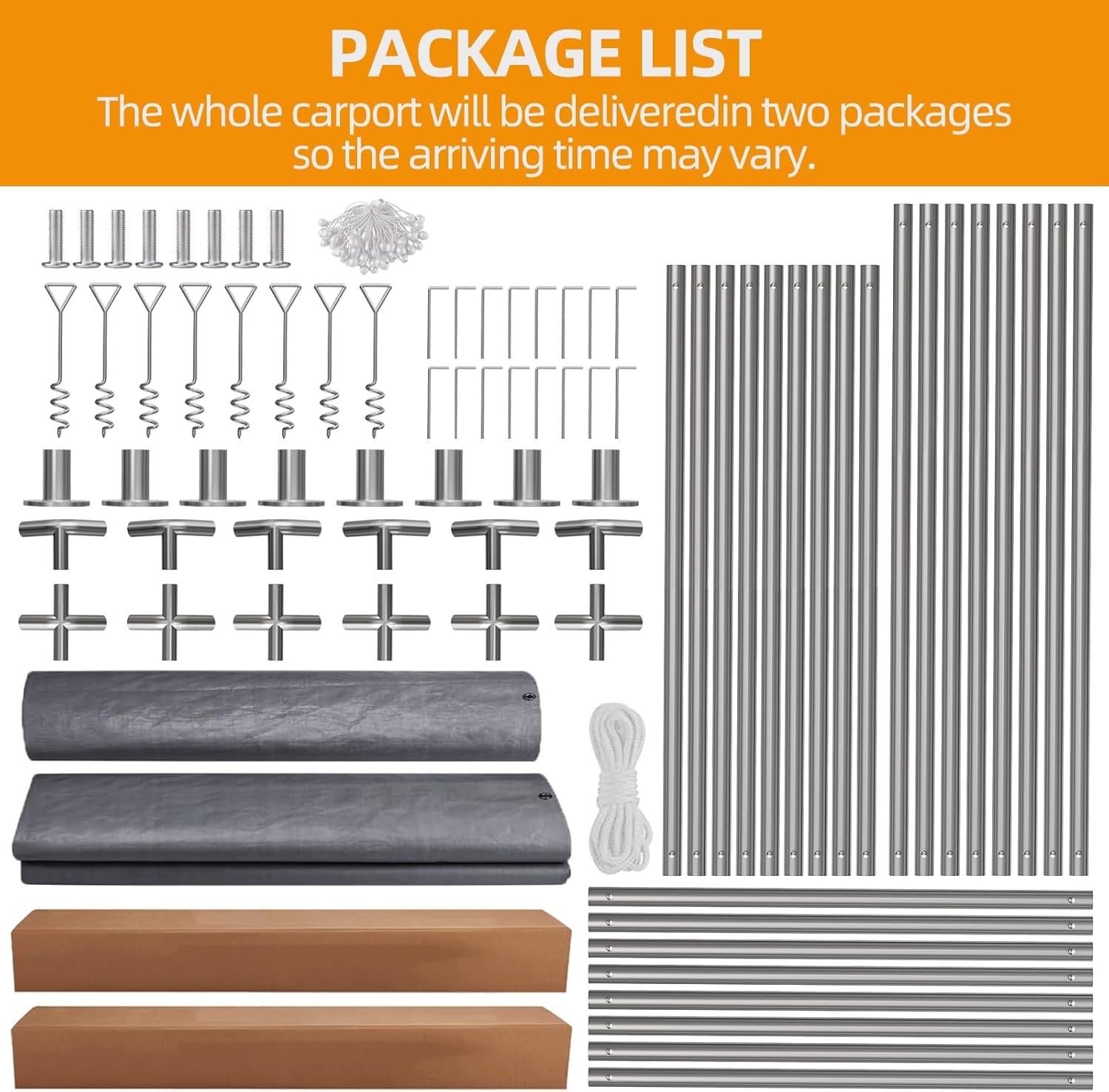 - Windproof & Securely Anchored: Engineered to withstand strong winds and external forces. Includes elastic balls, nylon ropes, ground nails, and windproof stakes for maximum security. The reinforced construction ensures your carport stays firmly anchored, keeping contents protected.