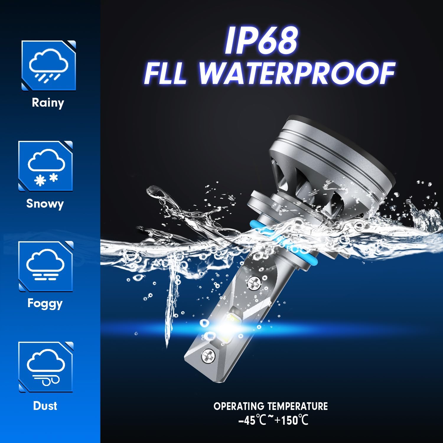 - 【Over 5,0000 Hours Lifespan】 - With whole aviation aluminum body, unique hollow-carved heat sink design and 1,2000RPM turbo cool fan, our 9005 fog light bulbs provide super cooling ability, which ensures a longer lifespan up to 5,0000 hours.