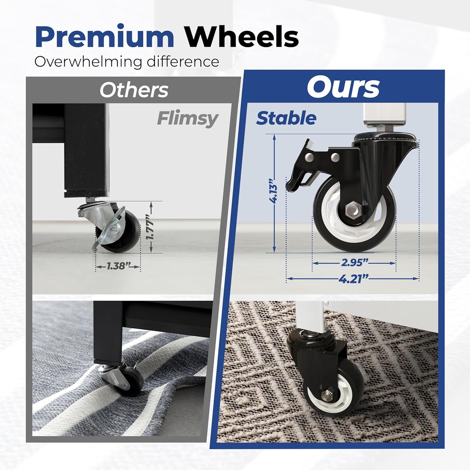 HOMEDANT House White 5-Tier Metal Rolling Cart Shelf Rack Casters Heavy Duty Wheel Shelving Unit Adjustable Utility Storage Shelves Organizer Shelf Kitchen Garage 36.2" W x 16.5" D x 69.5" H 2Pack