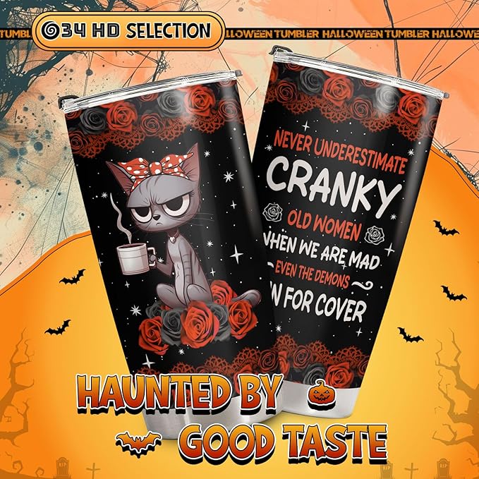 34HD Funny Black Cat Tumbler with Lid, 20 oz Stainless Steel Vacuum Insulated Pet Coffee Mug, Cat Lover Gifts for Women Girl Mom Birthday Halloween Christmas