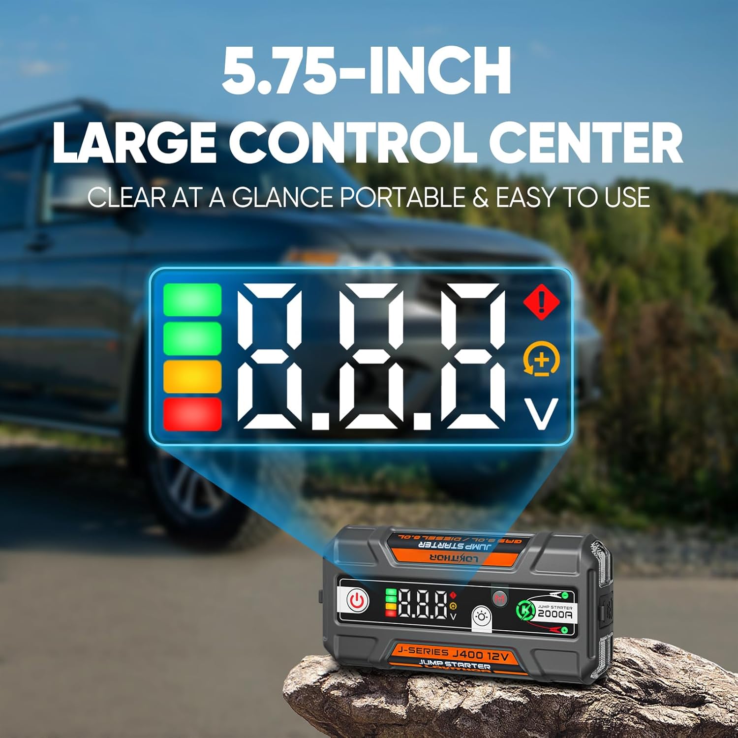 J400 2000A 12V Portable Lithium Jump Starter, Car Battery Booster Pack, USB-C Powerbank Charger, and Jumper Cables for Upto 8.0-Liter Gas and 6.0-Liter Diesel Engines