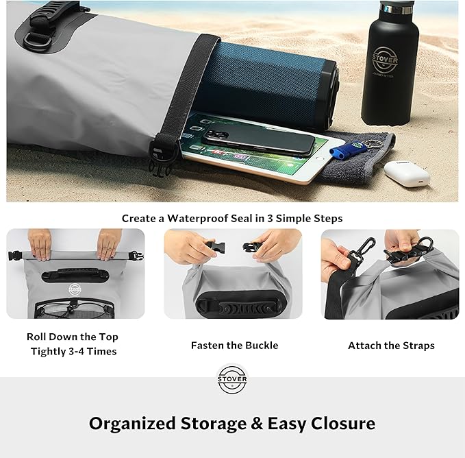 - EASY-TO-USE ROLL TOP CLOSURE: Keep water out effortlessly with our intuitive roll-top closure. Simply fold the dry pack down 3-4 times, secure the buckles, and you're set for any adventure!