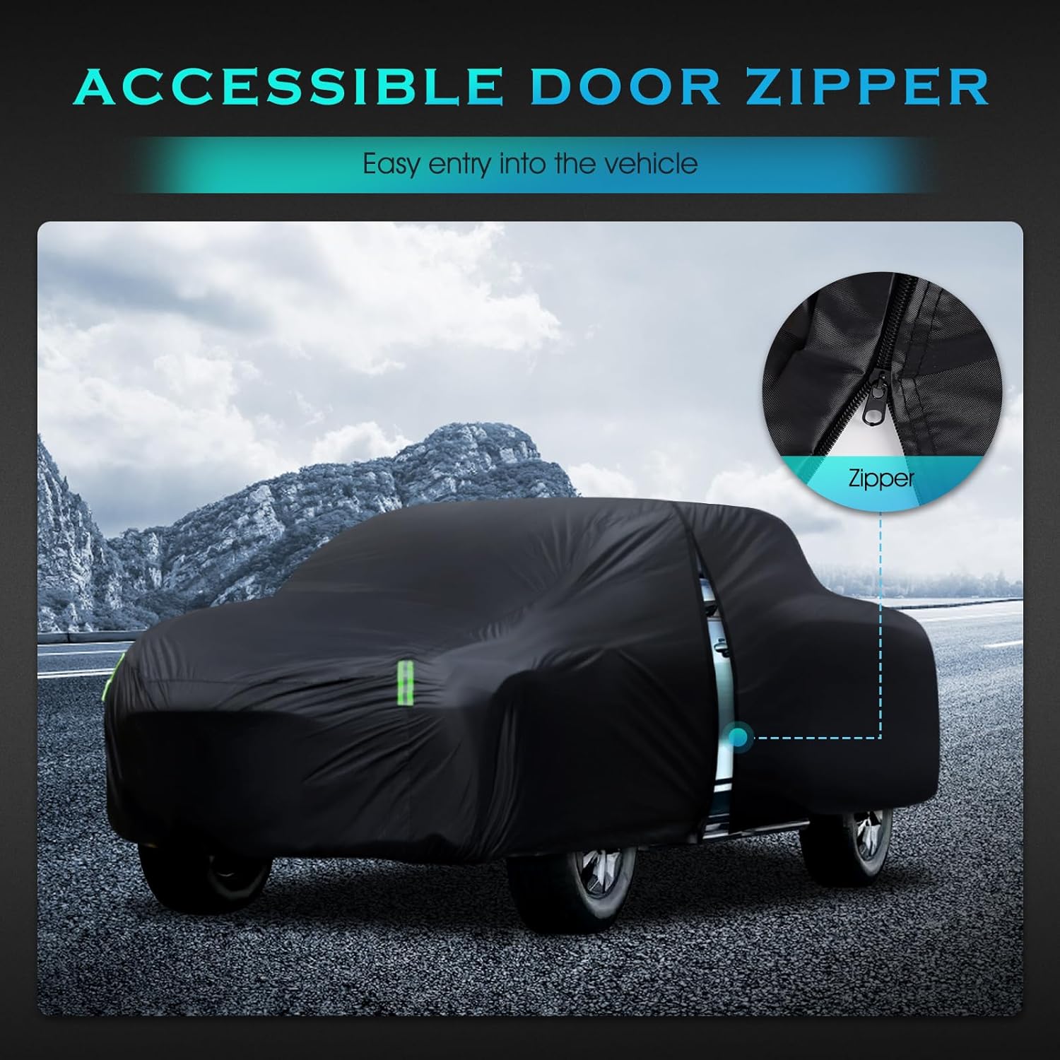 - 【Professional Design 】: The zipper design of the driver's door makes it convenient for you to enter and exit the car; The front and rear elastic hem makes the car cover more snug, with four tire windbreaks and a long strap in the middle with a quick release clip to protect your car cover from strong winds.