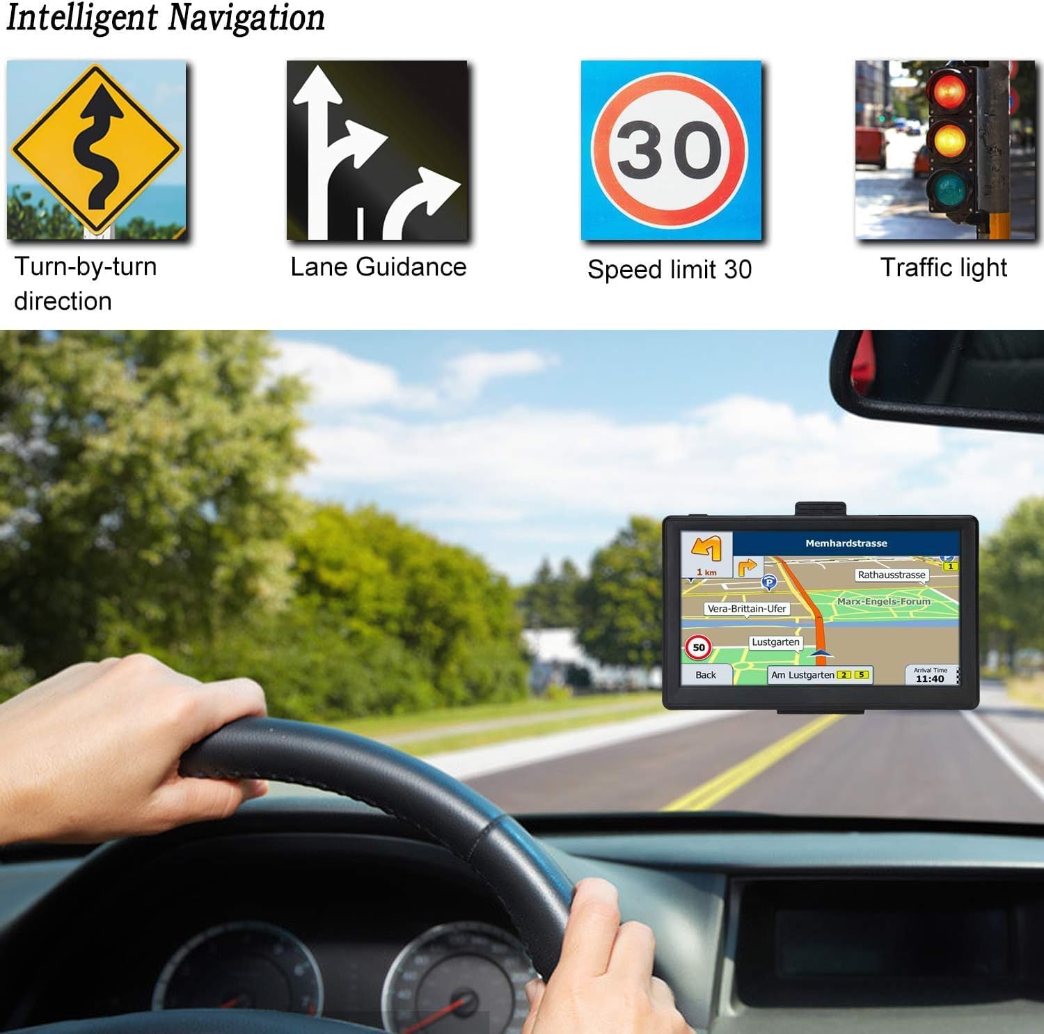 - 【BEST NAVIGATION 】Choose from a selection of over 40 languages voices that will provide you turn by turn voice navigation, so you don’t have to look on the GPS screen all the time. FM Amplify volume function(NO radio): it can transmit the navigation audio into the audio of car, increase the volume of navigation broadcast to make it clearer. It makes your driving safer, reduce fatigue driving, away from the ticket, Just Enjoy Your Driving.