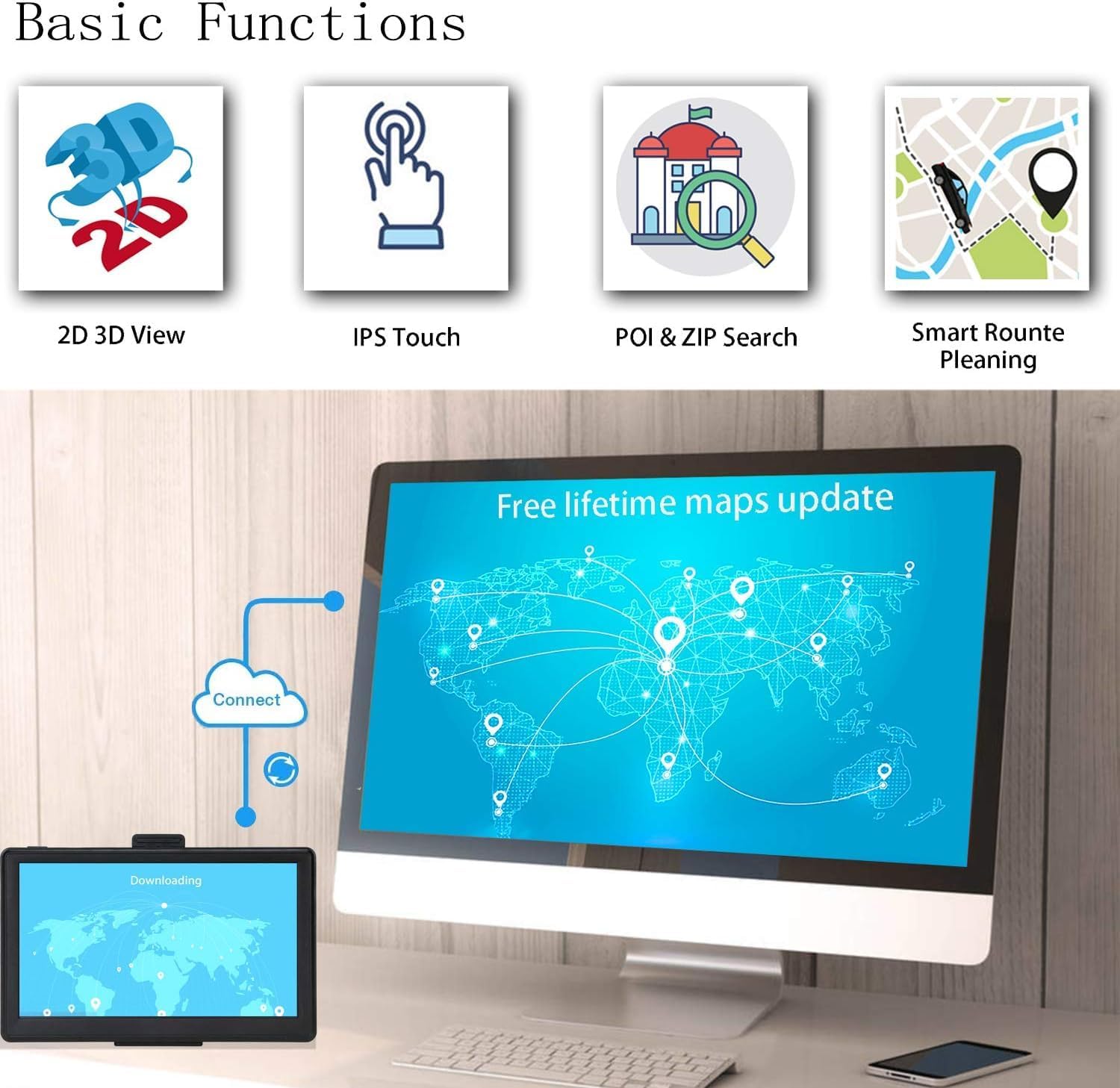 - 【 Easy to use】LOVPOI navigation system which has 2D / 3D navigation maps, the display was clear and accurate. easy to use professional GPS navigator with bright 7.0 inch Touch Screen, The large screen is clear and sensitive, resolution 800 x 480.
