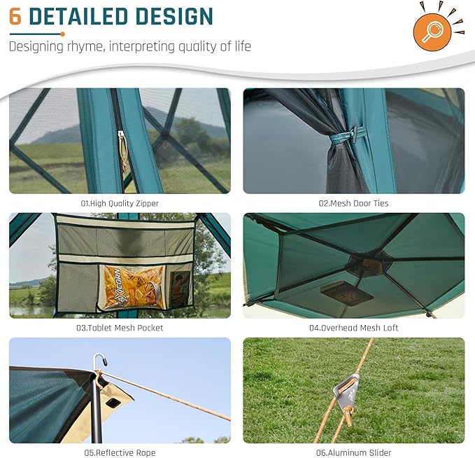 - Included Components : Carry Bag, Instant Pop Up Screen Tent with Awning, 11.5FT x 10FT x 82IN, 6 Person Camping Tent with Floor, Large Family Tents Screen House Room with Rainfly, Hexagon Hub Tent, Easy Up Tent for Outdoor Camping Picnic, Stakes, Rainfly Carry Bag, Instant Pop Up Screen Tent with Awning, 11.5FT x 10FT x 82IN, 6 Person Camping Tent with Floor, Large Family Tents Screen House Room with Rainfly, Hexagon Hub Tent,… See more