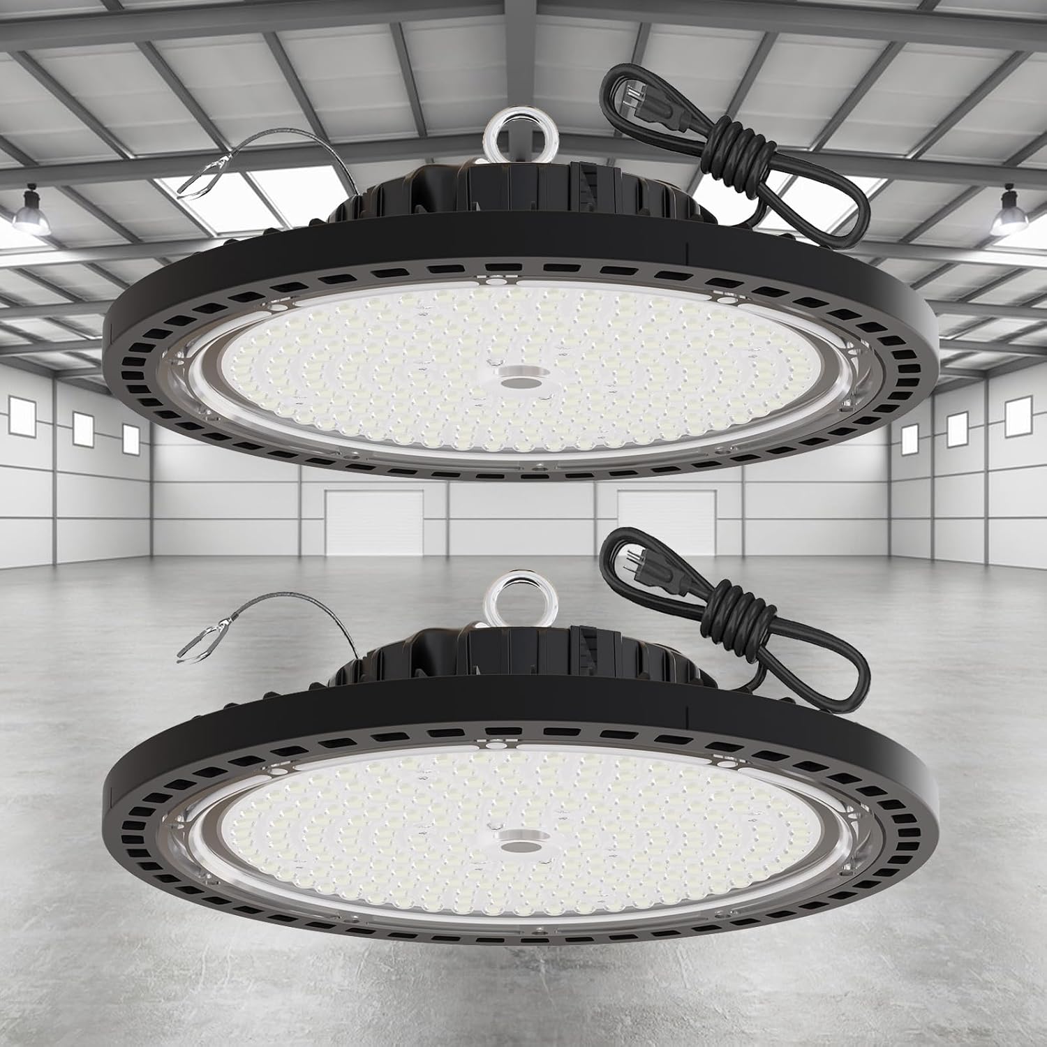 2 Pack UFO LED High Bay Light 250W, 35000 LM, 5000K with 5ft Power Cord, US Plug, Bright LED Shop Light for Basement Commercial Factory Garage Lighting, IP66 Waterproof, AC110-277V, ETL Listded