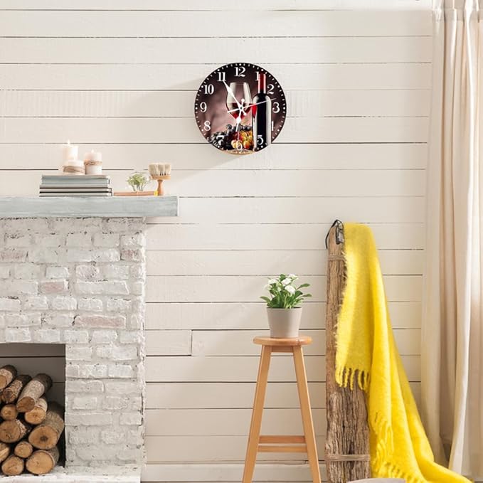 Ansouyi Round Wall Clock Battery Operated Clocks Wallclock 10 Inch,Red Wine Grapes Silent Non Ticking Wall Clock for Living Room,Kitchen,Home,Bathroom,Bedroom,Office or School