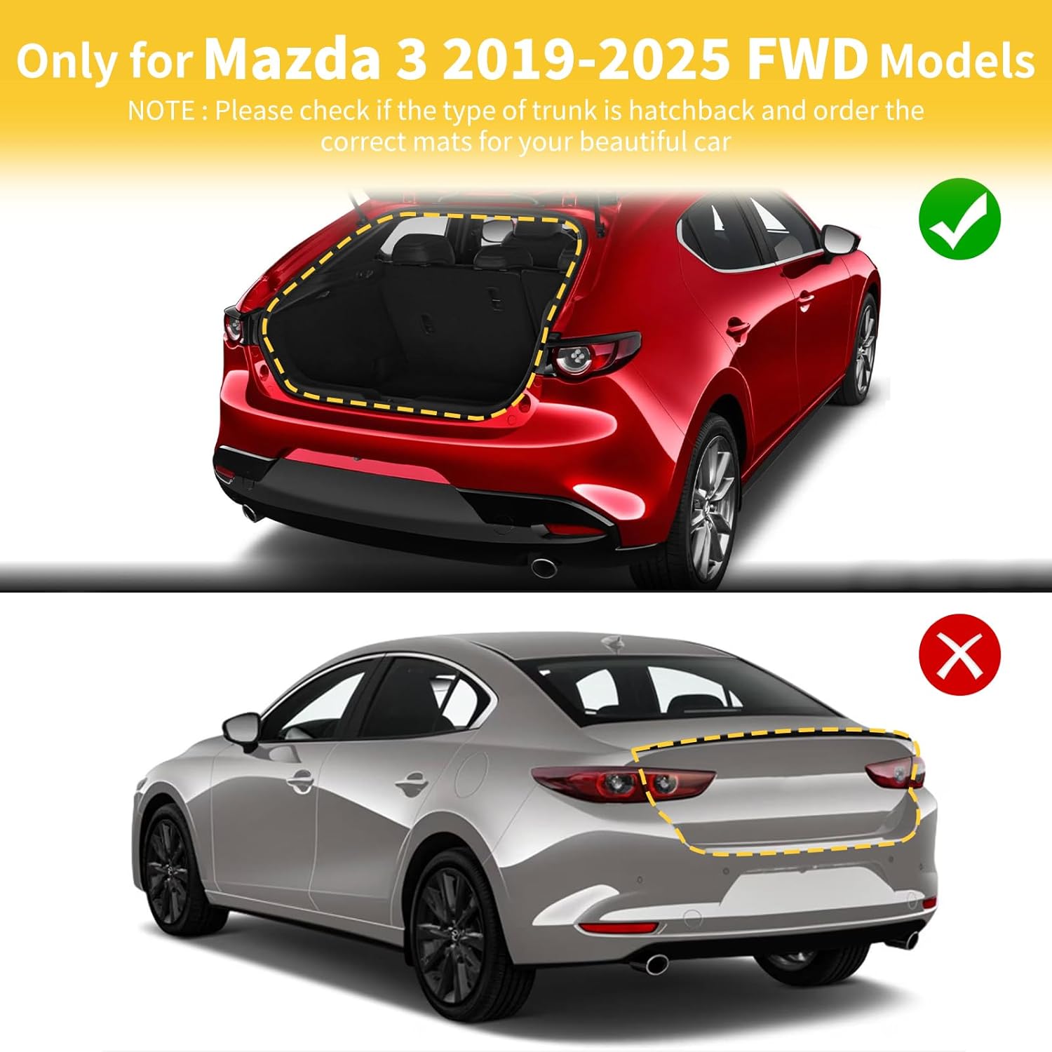 - Custom fit:Fit for Mazda 3 2019-2024 2025 (Not for AWD Models) | Please check to order the correct mats for your beloved vehicle