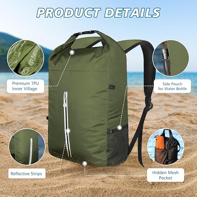 Waterproof Backpack 20L/30L, Lightweight Floating Waterproof Dry Bag with Reflective Strips, Great for Kayaking, Water Parks, Camping, Rafting, Wild Fishing