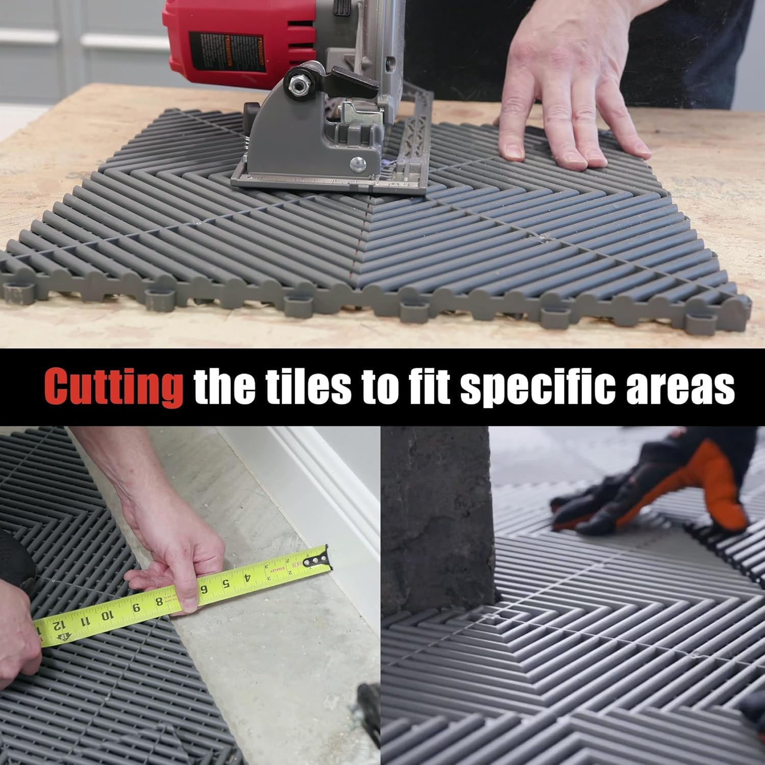 25PCS|15.7"x15.7" Garage Flooring Tiles, Non-Slip Interlocking Plastic Garage Floor Mat, Garage Organization & Garage Storage, Vented Pattern (Grey)