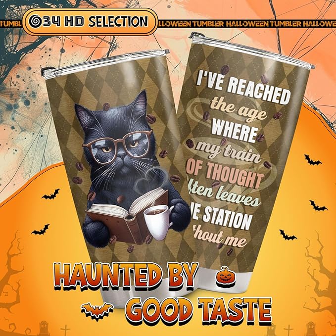 34HD Black Cat Tumbler with Lid, 20oz Stainless Steel Vacuum Insulated Cute Kitty Cup, Reading Coffee Mug with Cats, Funny Cat Gifts for Her Women on Birthday Mothers Day Christmas