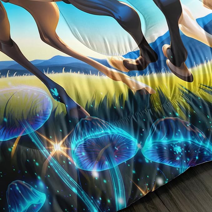 - 【Features】This children's comforter is printed with a pattern of two cute ponies running wildly on the grassland. The blue starry sky glitter background adds a touch of color and fantasy. The youthful and energetic design brings joy to your children.