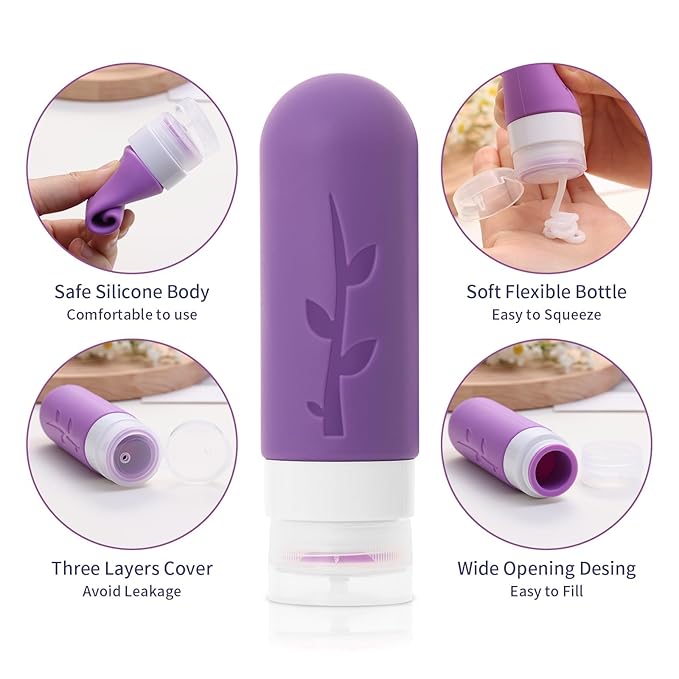 - Tsa Approved Leak Proof Travel Toiletries Bottles: The silicone bottles are designed with 3-layer leak-proof with a sturdy flip-top lid and a drip-free valve to protect your bottle from spills, leaks or drips during transport, prevent your expensive cosmetics from leaking during travel, with our unique leak-proof design