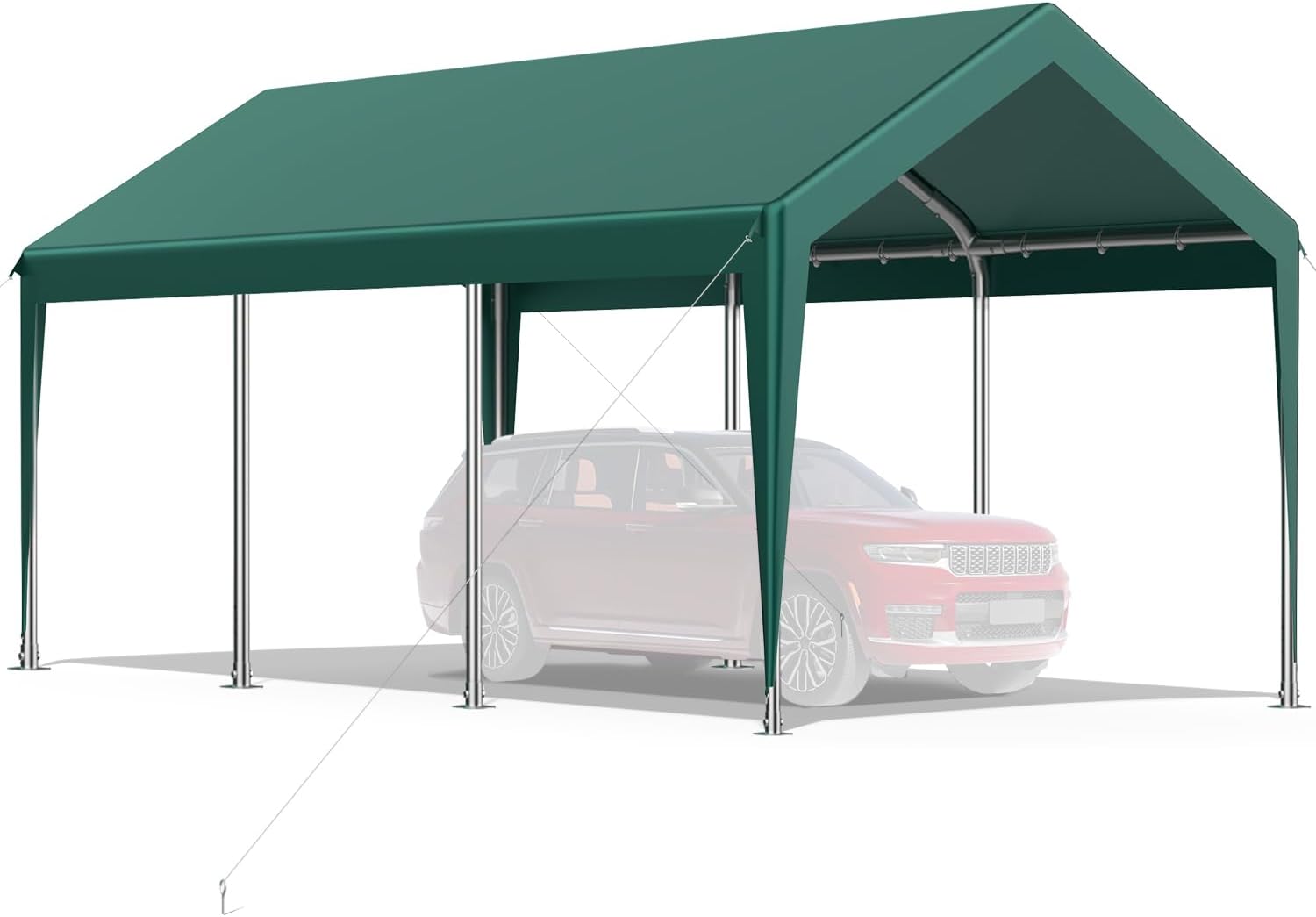 - Larger Garage: Raxmolo 12'x20'heavy duty carport size provides plenty of room for cars,boats,trucks,motorcycles. Peak height of 9.8FT allows large machines to be parked.