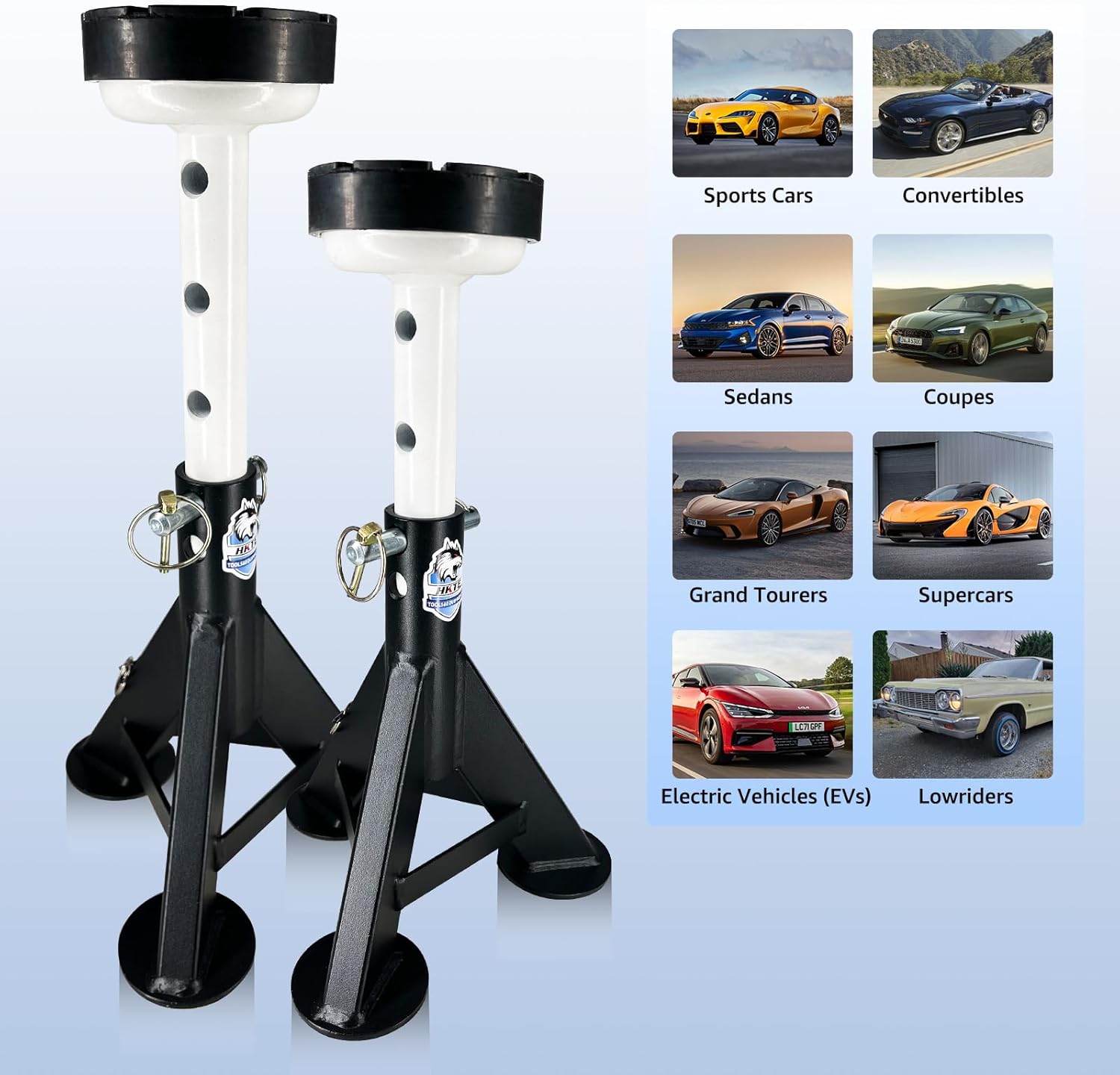 - Low-Profile Design: Perfect for garages or workshops, the low-profile design of these jack stands enhances their suitability for diverse automotive environments.