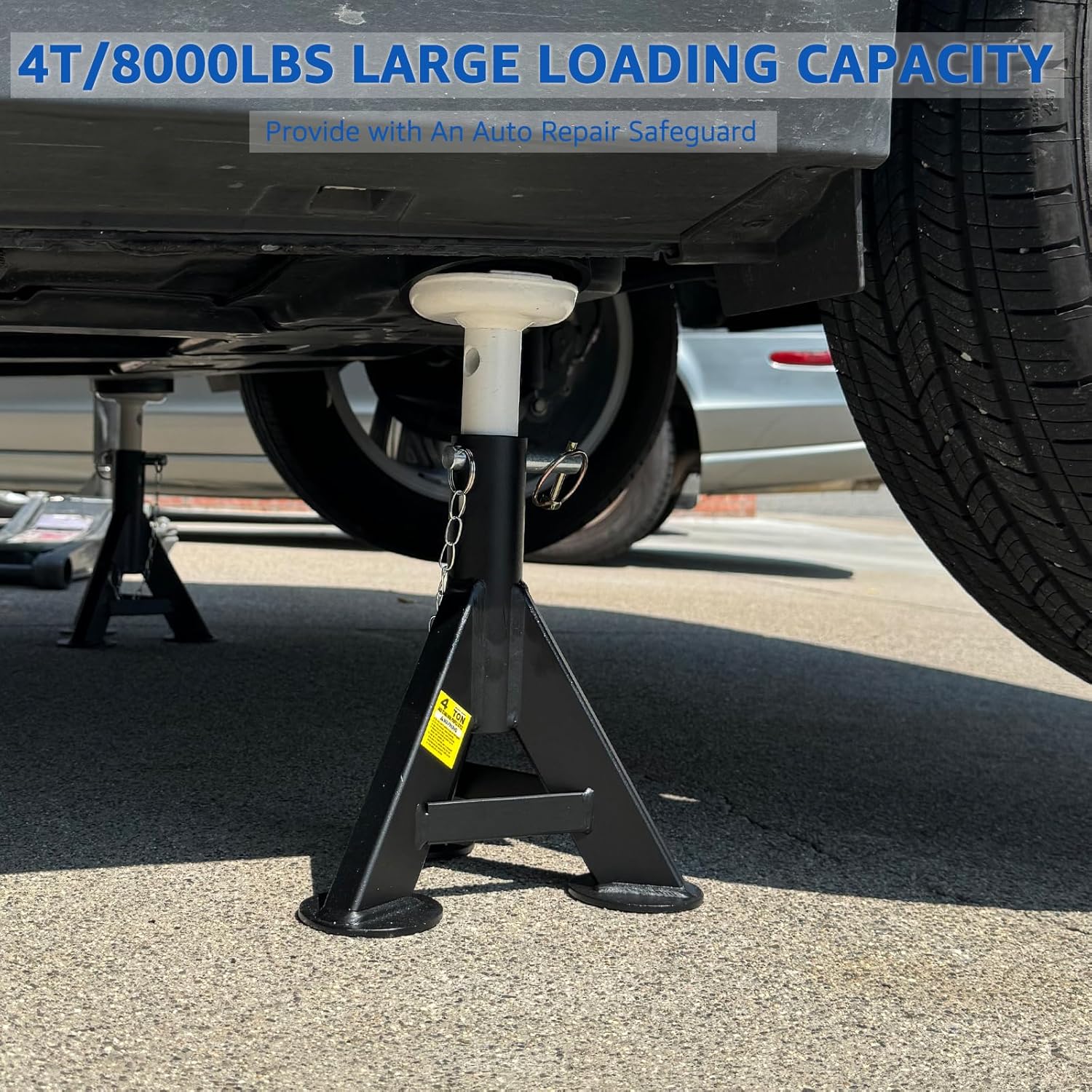 HKTE 4 Ton Heavy Duty Jack Stands, Low Profile, Security Locking Pins, 8,000 lbs Capacity, 2pack