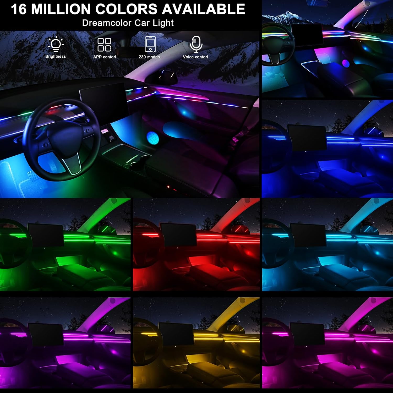 Dream+Color Acrylic Interior Car LED Strip Light with APP, RGB 22 in 1 with 175 inches 600 LEDs Fiber Optic Ambient Lighting Kits, Dynamic Chasing Music Sync Neon LED Strip for Car Accessories