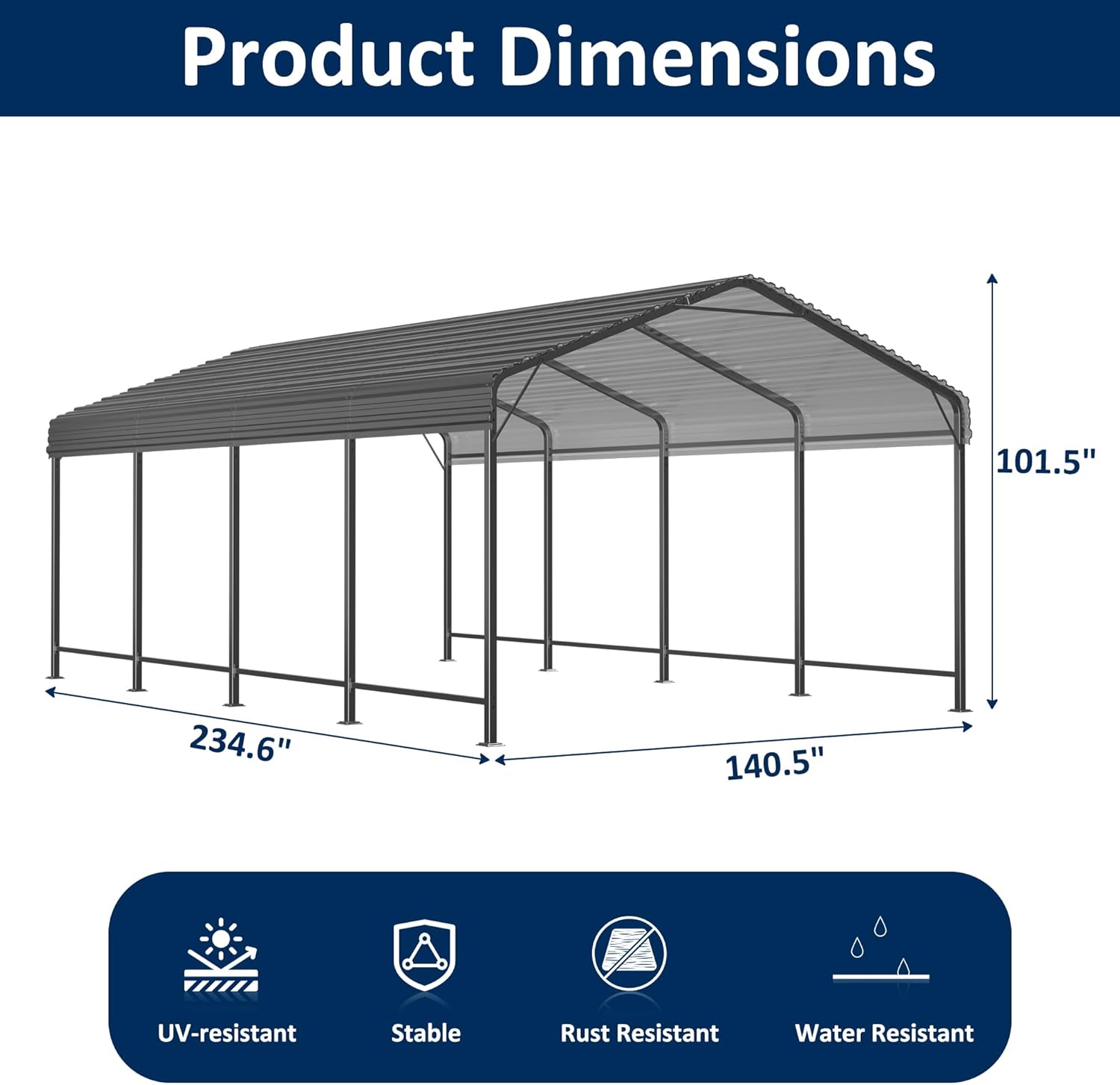 - [Multipurpose Protection] It can easily transform into an inviting space for outdoor activities or secure storage, seamlessly integrating into any exterior decor. Whether you need a shelter for your vehicles or a functional space for your hobbies, this carport has got you covered.
