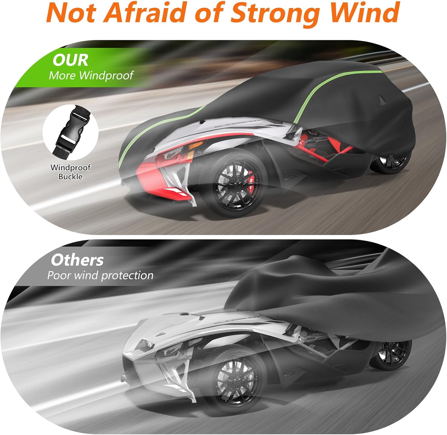 - All Weather Protection: The cover keeps your Slingshot Polaris clean from rain, snow, dust, and leaves, prolonging the life of your Slingshot Polaris and minimizing the need for cleaning.