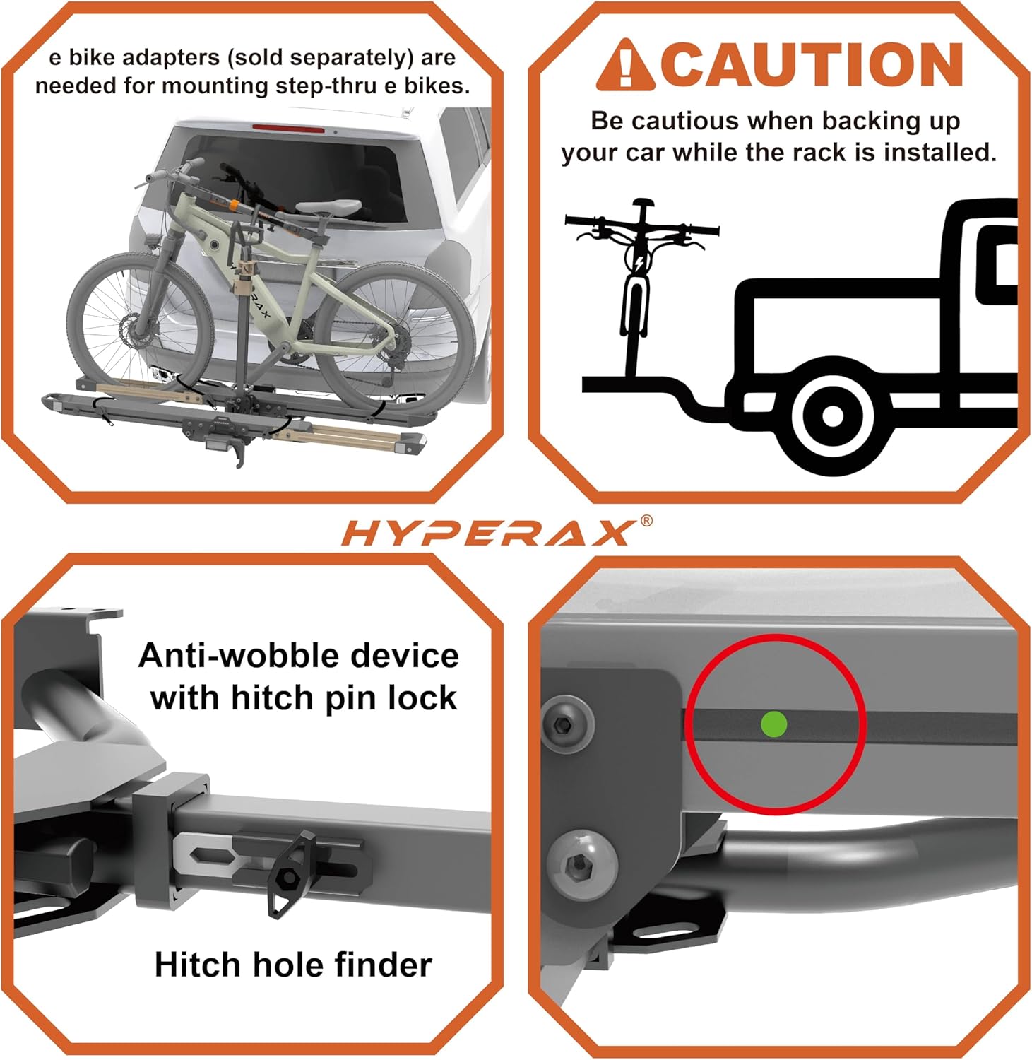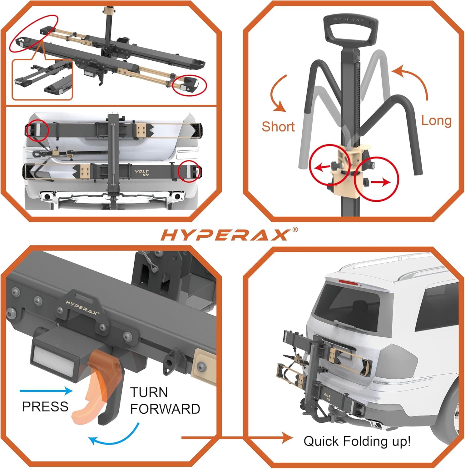 HYPERAX Volt Lift SP -E Bike Hitch Mount Platform Style 2 Bikes Carrier for Car, SUV, Truck, Sedan, Tilting e-Bike Rack for Hitch Fits Up to 2 * 80 lbs Bike -NO RV USE!