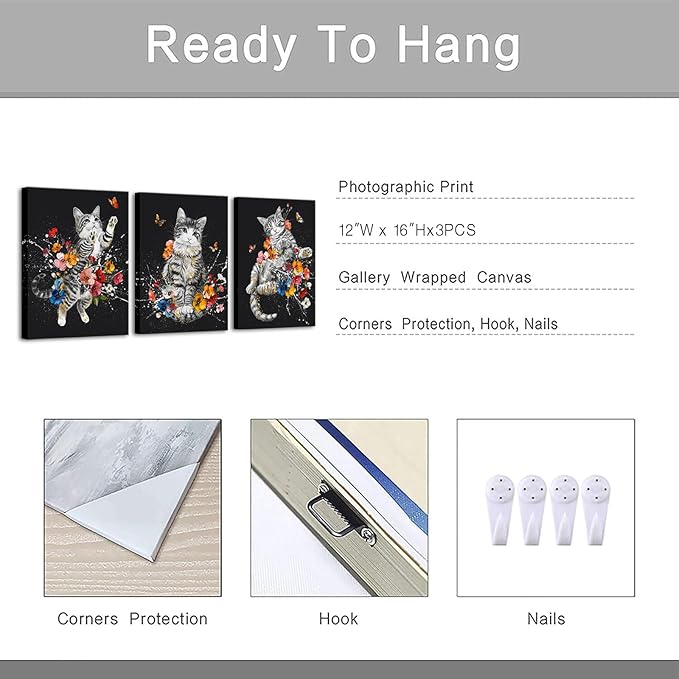 - Versatile Home Decor: With a universally compatible medium size, these cute cat wall art are perfect for various spaces, including living rooms, bedrooms, bathrooms, kitchens, and more. They also serve as ideal gifts for birthdays, anniversaries, and holidays