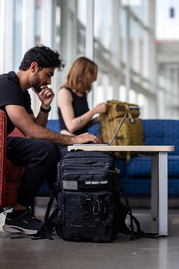 - 🦅 MULTIROLE TACTICAL EFFICIENCY: The AMERICANPHOENIX backpack is a fusion of military and lifestyle. With padded 17inch laptop & 13inch tablet sleeves, cushioned shoulder straps, ventilated back panel, MOLLE, D-rings, and an adaptive volumetric design, it is meticulously crafted to serve as an everyday carry backpack (EDC), comfortable work backpack, travel backpack, or a robust hiking backpack.