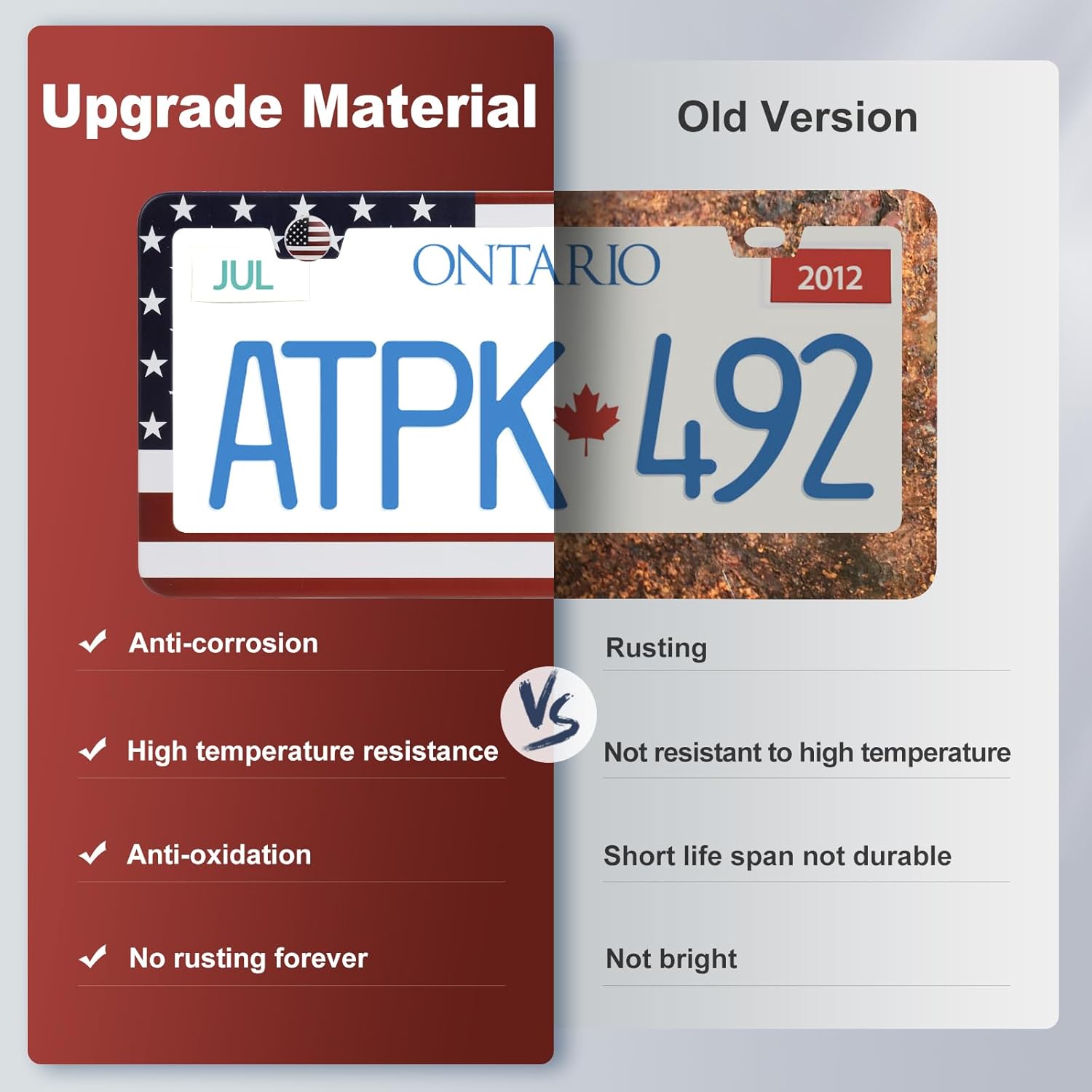 - THE NEW STYLE DOES NOT COVER THE STATE NAME: The upgraded style of the license plate frame is more suitable, and the size of 12.2inch*6.3inch meets the US and Canada standards. The license plate frame is covered with arcs, and the corners are finely polished to prevent scratches on the car paint and protect the license plate from warping and bending.