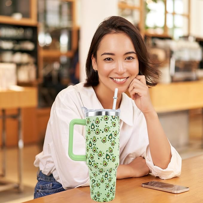 Avocado Tumbler 40 oz Tumbler with Handle and Straw Lid Leak Proof - Birthday Gifts for Women Travel Coffee Mug Insulated for Hot Cold Ice - Avocado Gifts for Women Mom Mothers Day
