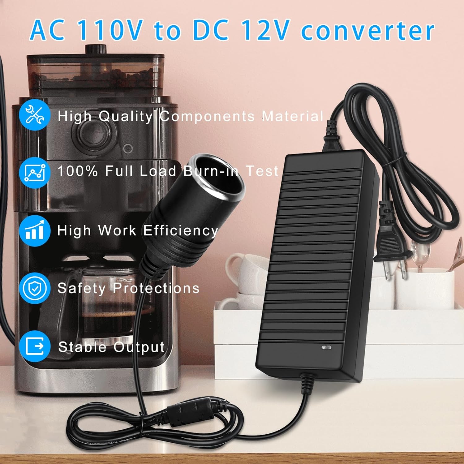 - Widely Used: 110v to 12v converter widely used in car device with cigarette lighter plug (≤12V 120W): car charger, car air fan, car dash cam, car MP3 player, car bluetooth FM radio adapter; car humidifier & car diffuser, refrigerator etc