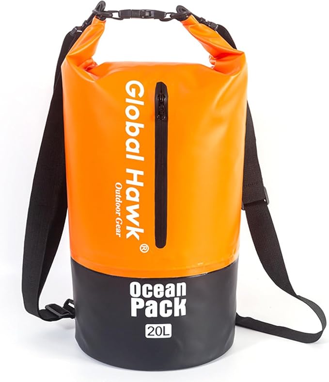 Waterproof Dry Bags: 10L, 20L Sizes - Ideal for Kayaking, Fishing, Rafting, and More! Adjustable Strap for Ultimate Convenience. Stay Dry While Adventuring (Orange, 20L)