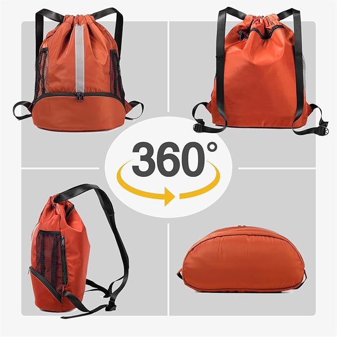 - SEPARATE WET POCKET & SHOE COMPARTMENTS: This drawstring bag has a wet pocket on backside for storing damp items like toiletries and wet towels, keeping other items dry and organized. And there is an enlarged shoe pocket at the bottom, which is perfect for storing sneakers or high-top basketball shoes.