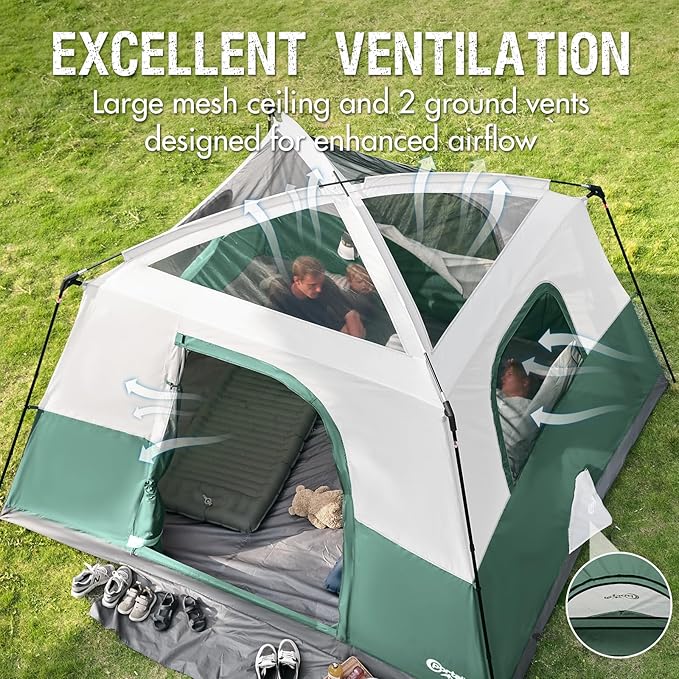 - Good Ventilation & View: The tent has 3 Large Mesh Windows, 2 ground vents and 1 mesh ceiling which promote air circulation. You can enjoy a starry night view (without the rainfly) while having a good night's sleep.
