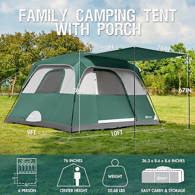 PORTAL 6 | 8 | 10 Person Family Camping Tent with Porch, Big Family Camping Tent with Tall Height, Good Ventilation, Water Resitant Large Tent for Outdoor Camping, Backyard