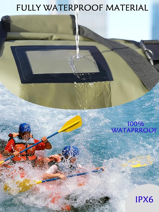 • [100% Waterproof Material] Our waterproof duffel bag is crafted from 500D PVC waterproof fabric, providing rainstorm-level waterproofing, ensuring you stay dry even in adverse weather conditions. Seamlessly constructed, it's durable, waterproof, and scratch-resistant.