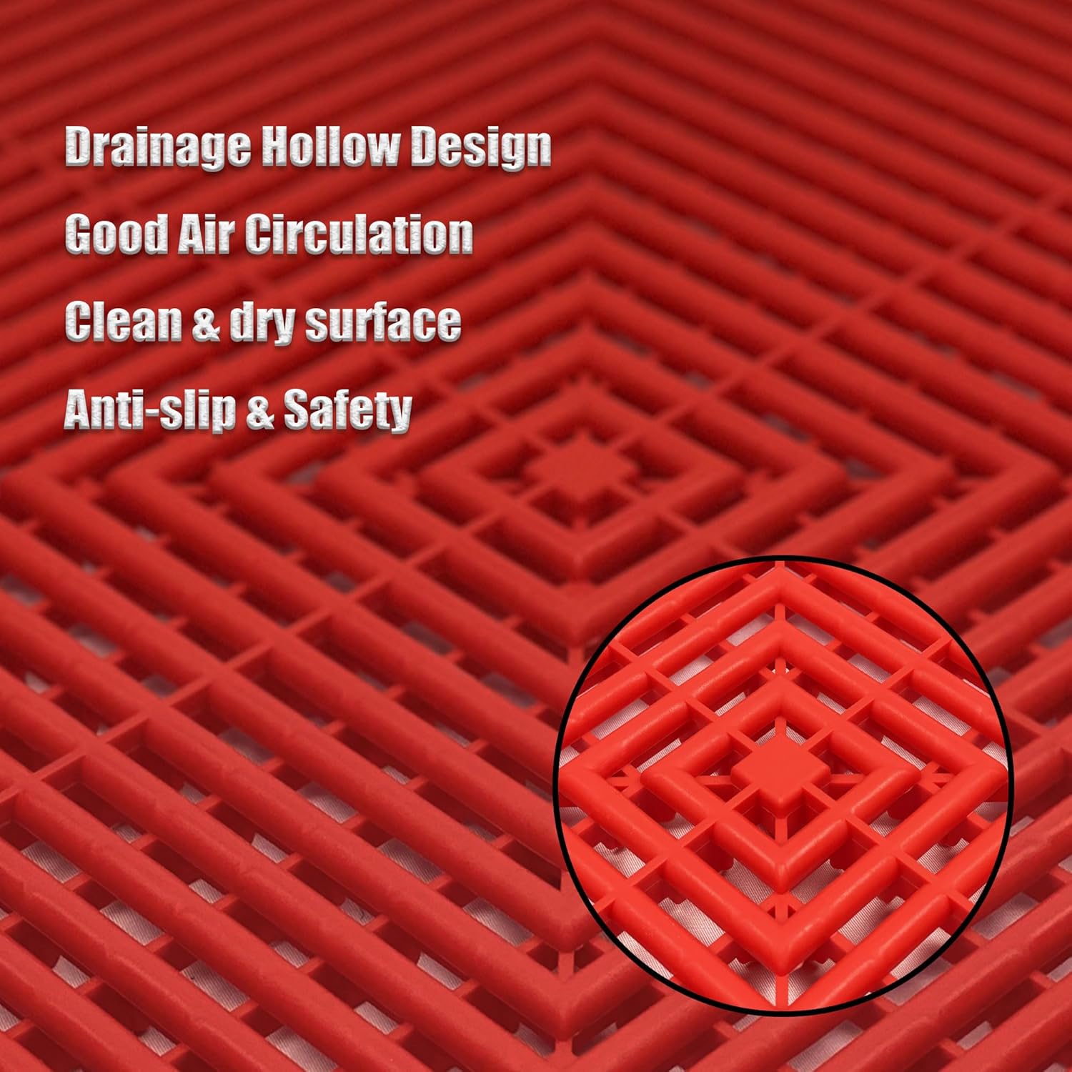 24 Pack 16"x16" Interlocking Garage Floor Tiles - Drainage Mats, Non-Slip, Heavy-Duty, Easy Install for Garage, Car Wash, Basement(Red)