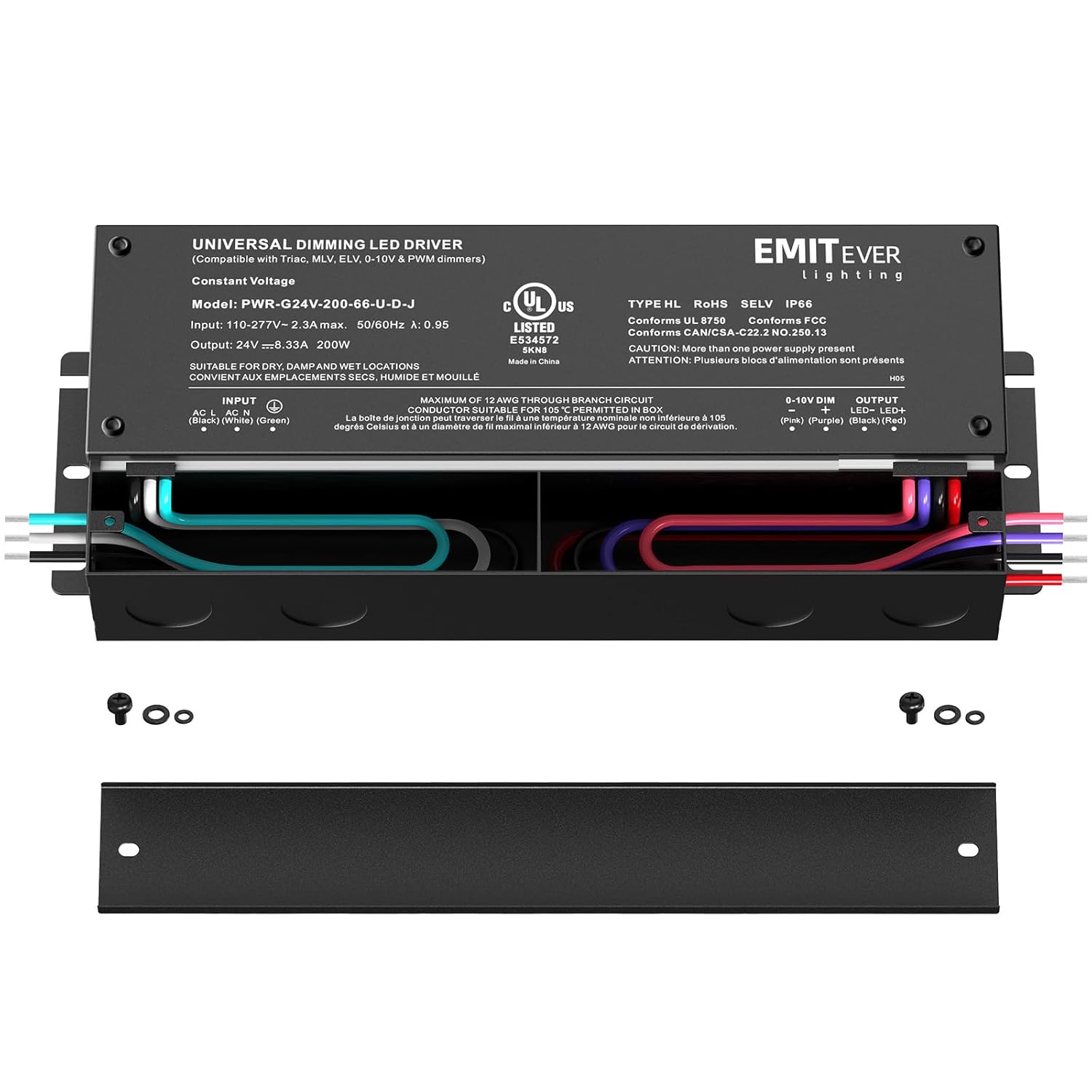 EMITEVER Dimmable Led Driver, 200W AC 110V-277V to DC 24V Transformer, 5-in-1 Dimming: ELV/MLV/TRIAC / 0-10V / 1-10V / 10V PWM/Potentiometer, Waterproof IP67 and UL Listed
