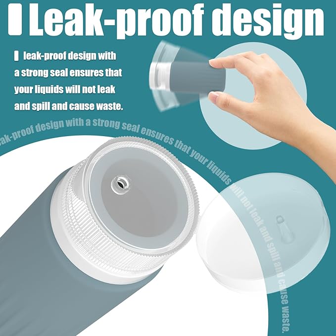 - LEAKPROOF TRAVEL BOTTLES -- The leak-proof design with a strong seal ensures that your liquids will not leak and spill and cause waste. The unique air valve design makes it easy to use and keeps the travel toiletry bottles resilient for continued use. A variety of accessories make it easy to use the travel set to maximise your suitcase space.