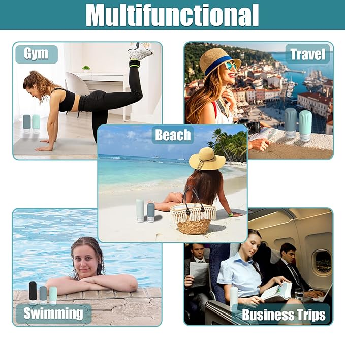 - TSA APPROVED CAPACITY -- Our travel size containers consists of a combination of 4 different colored silicone bottles and plastic bottles and jars, it perfectly meets the airline requirements and allows you to go through the security check without any obstacles. You can use it to hold your shampoo, body wash, mouthwash, etc. for traveling business trips to the gym, portable and not taking up much space.