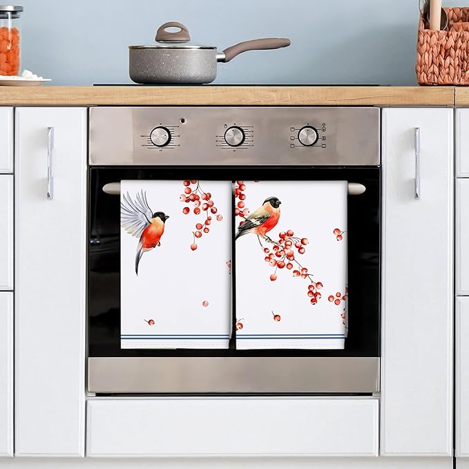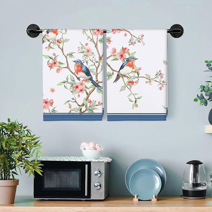 Watercolor Bird Flowers Tea Towels, Cotton Kitchen Towel 18.9 × 27.5 inch, Quick Drying Dish Cloth for Party Anniversary Holiday Decoration Housewarming Gifts