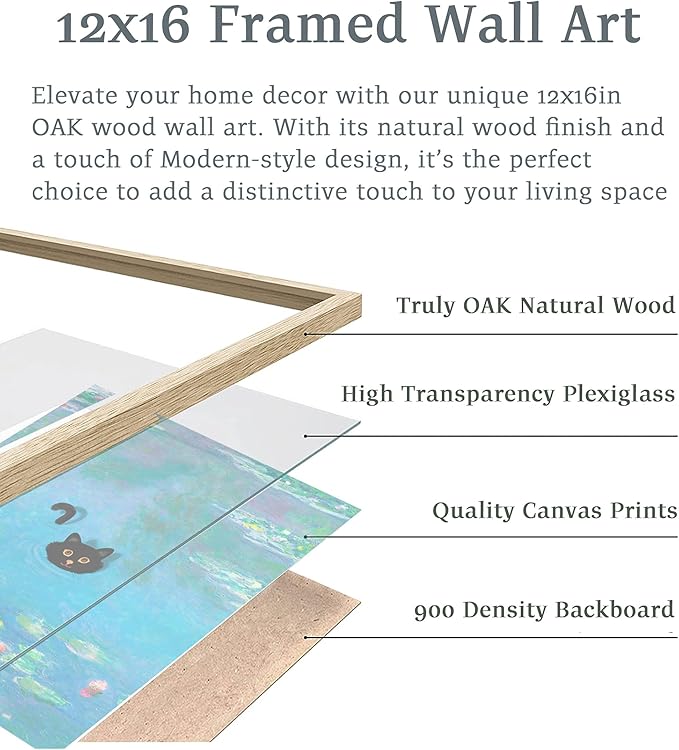 - Cute & Funny Cat Element:Perfect for cat lovers and art fans alike, the adorable feline brings a touch of humor and personality to the serene water garden scene, making your room feel warmer and more inviting.