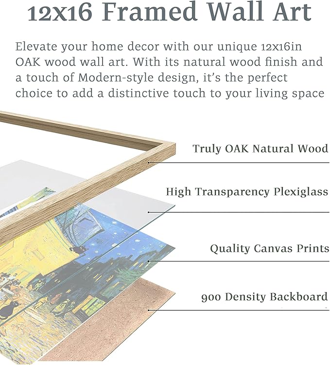 - High-Quality Materials: The UPWOIGH Beige Oak Wood Framed Wall Art is crafted with premium oak wood frames, ensuring sturdy durability to maintain its pristine condition over time.
